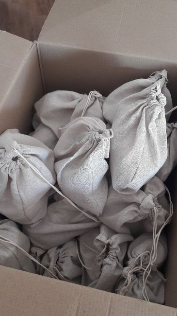 À 12jours du mariage on fini les dernières choses... Les pochons pour les cadeaux invités sont remplis, je fini de broder, et il me reste qq robes du cortège à faire, je suis en repos toute cette semaine, donc tout sera fini...