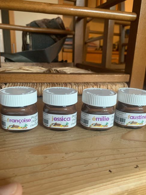 Pour ne pas mettre de petit pot de miel sur la table des enfants, j’ai décidé de prendre des mini pots de Nutella et de changer les étiquettes, les costumes mis en moi-même à l’aide de ma cricut… et bien sûr quand nos grands ados ont vu le résultat...