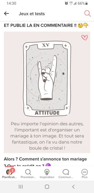 Coucou tout le monde 💜 Merci d'avoir participé jusqu'au bout ! Maintenant qu'on en sait un peu plus sur ton mariage, on va pouvoir tirer les cartes... FAIS UNE CAPTURE D'ÉCRAN DE CE GIF ET PUBLIE LA EN COMMENTAIRE !! 🧐👇 Alors ? Comment s'annonce ton...