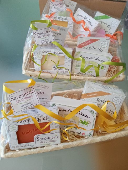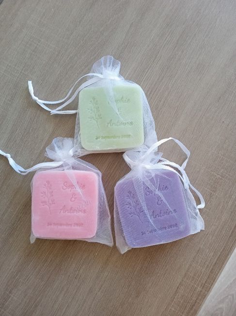 Bonjour. Plus que 2 mois et demi avant le mariage. On commence a recevoir petit a petit toutes nos commandes Aujourd'hui nous avond reçu nos savons personnalisés artisanaux et nos coffrets savons pour la tombola. Ils sont vraiment magnifiques et...
