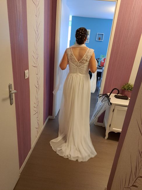 Coucou ! Hier, j’ai essayé les robes. J’ai fait deux boutiques, je voulais pas trop sinon ça va me perturber. J’ai presque trouvé la robe de mes rêves.La robe, il y a là tulle mais comme j’ai du mal, on a rajouté le mousseline pour voir comment ça...