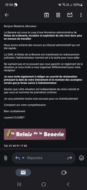 Faite attention mariés Nous avons été prévenu 14 jours avant notre mariage pour fermeture administrative Sauvé votre mariage.Contactez moi pour essayer de nous faire rembourser.......