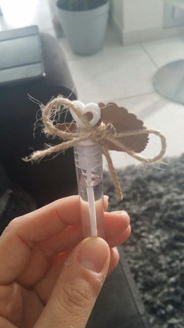 Voilà encore une bonne chose de faite. J'ai remplie nos 130 flacons de bulles pour la sortie de la mairie. J'y ai accrocher une petite étiquette dessus pour signaler qu'il faudra les souffler à la sortie de la marie. Les confettis seront pour la...