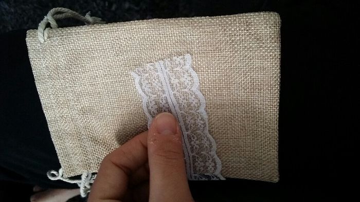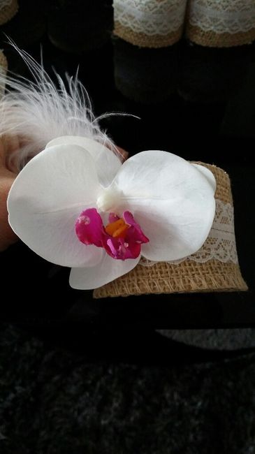 Voilà les ronds de serviette fait, en toile de jute et dentelle bien évidemment Mais je ne sais que faire: le laissé neutre, ajouter une plume ou ajouter une orchidées et une plume... Donnez moi vos avis!!! Merci d'avance les filles