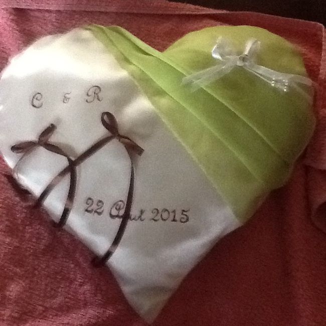 Coucou les filles!!! Voilà mon coussin d alliance réaliser par la grand mère de ma belle sœur!!!! J'attend vos commentaires avec impatience... Et désolée pour la qualité