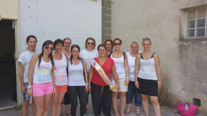 Coucou les filles!!! Alors c'est bon j ai fait mon edvf!!!! Pour commencer elles sont venues me chercher sur mon lieu de travail avec la musique des sandrines!!! Puis elles m ont fait un circuit Avec des egnimes et des défis sur chaque lieu..... Et...