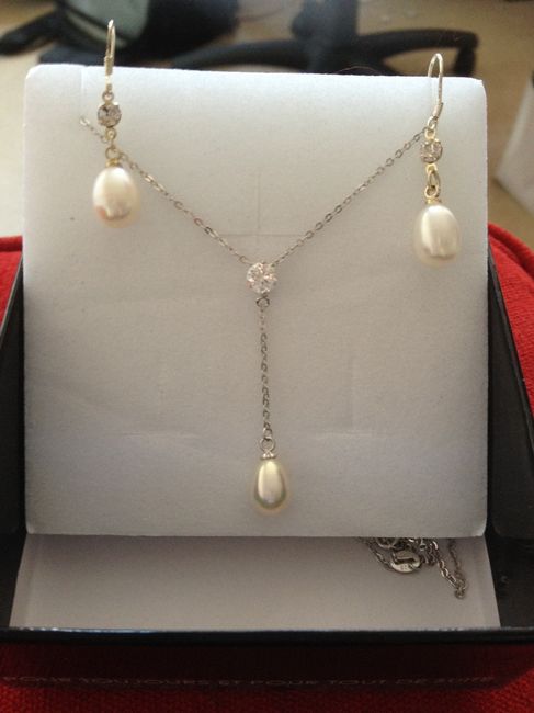 Ma parure pour ma robe! J'ai trouvé mes boucles d'oreilles ds un petit magasin à Londres et grâce à ma merveilleuse maman qui m'a trouvé le collier parfaitement assorti a Histoire d'or me voilà parée ...... Manque plus que les chaussures