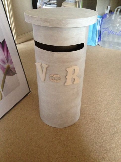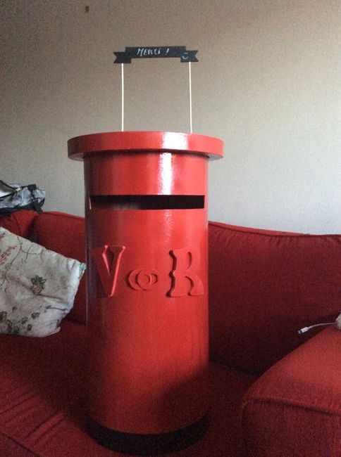 Et voici notre urne! Pas parfaite mais à notre image malgré une photo qui ne rend pas justice à la réelle couleur rouge que l on a choisi. Et aussi nos appareils photos jetables qui seront disposés sur les tables et qui rappellent nos faire-parts....