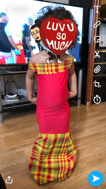 Coucou les filles voici une petite avancée c’était fastidieux je ne suis pas du tout pro en couture mais j’adore pour ma cérémonie laique je change de robe pr une robe rouge sirène avec une touche de madras mon futur changera juste de noeud papillon...