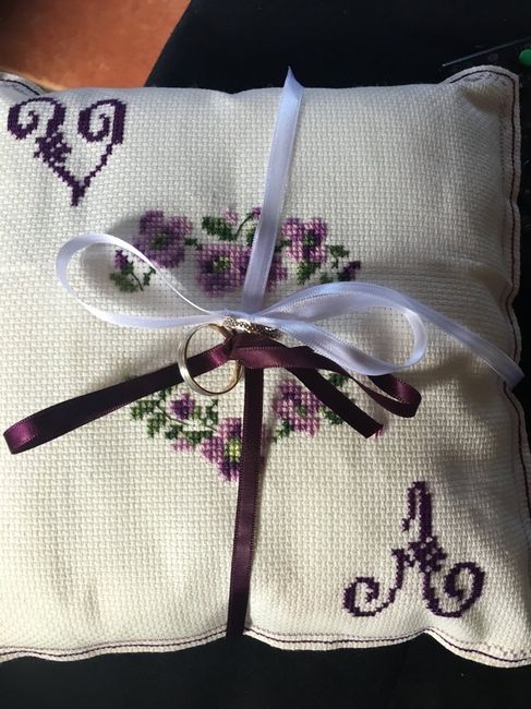 Bonjour les filles ! Voila depuis tout a lheure j'essaie en vain d'attacher nos alliances sur notre coussin. J'ai 2 rubans pour chawue bagues mais je n'arrive pas a les attacher de maniere a ce quelles glissent bien pour les enlever. Des conseils svp...