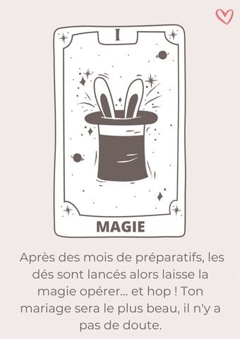 Coucou tout le monde 💜 Merci d'avoir participé jusqu'au bout ! Maintenant qu'on en sait un peu plus sur ton mariage, on va pouvoir tirer les cartes... FAIS UNE CAPTURE D'ÉCRAN DE CE GIF ET PUBLIE LA EN COMMENTAIRE !! 🧐👇 Alors ? Comment s'annonce ton...