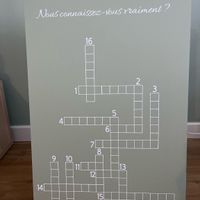 Il y a 769 joursBonjour à vous tous les FM, Notre mariage est dans un peu plus de 2 mois donc on avance sur les préparatifs. Je viens de finir nos mots croisés, le panneau sera mis sur un chevalet pendant le vin d’honneur. Je pensais mettre les phrases à côté dans...