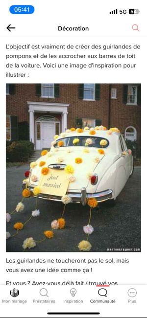 Hello les FM ! Avez-vous ou allez-vous décorer votre voiture pour votre mariage ?Si oui, pouvez-vous montrer ce que vous envisager ou ce que vous avez fait ?Merci 😁 📷