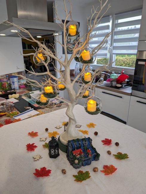 Aujourd'hui on test la décoration des tables. Mariage le 18 mai sur le thème : seigneur des anneaux. Chaque table est un lieu différents. Contente du résultat mais il manque quelque-chose.... Des avis ? (Les bougies seront bien sûr allumées comme sur...