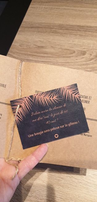 Hello ! Voilà mon faire part est terminé, mais dedans je souhaiterai y rajouter une feuille qui annonce aussi que le jour de notre mariage ça sera les 40ans de Monsieur et de ce fait ça se fête aussi car pas tout le monde le sait. La je sèche...