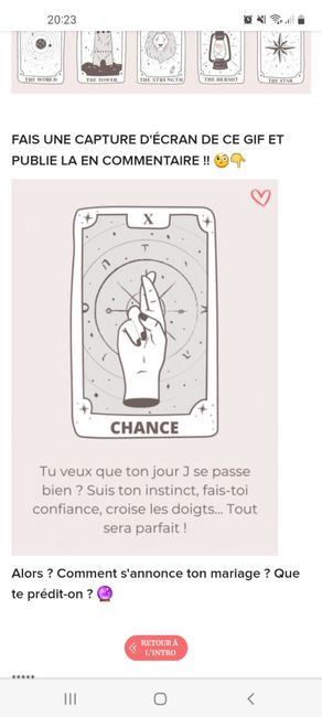 Coucou tout le monde 💜 Merci d'avoir participé jusqu'au bout ! Maintenant qu'on en sait un peu plus sur ton mariage, on va pouvoir tirer les cartes... FAIS UNE CAPTURE D'ÉCRAN DE CE GIF ET PUBLIE LA EN COMMENTAIRE !! 🧐👇 Alors ? Comment s'annonce ton...