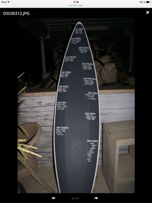 Bonjour, Je vends mon support de plan de table. Effet chic, exotique, et fun assuré. Peinte en grise avec une bande blanche, possibilté de la personnaliser comme on le souhaite, stickers, feutres,... Ou même l utiliser comme livre d or. Titre de...