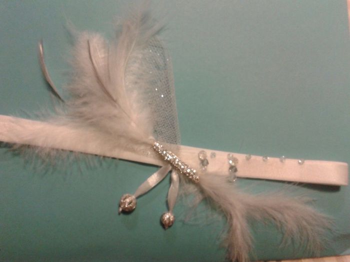 Coucou les filles Voilas se qu'a fait ma maman la jarretière j'ai hâté de la voir en vrai car je ne pourrais que l'avoir la veille du mariage. Et vous à quoi resemble votre jarretière?