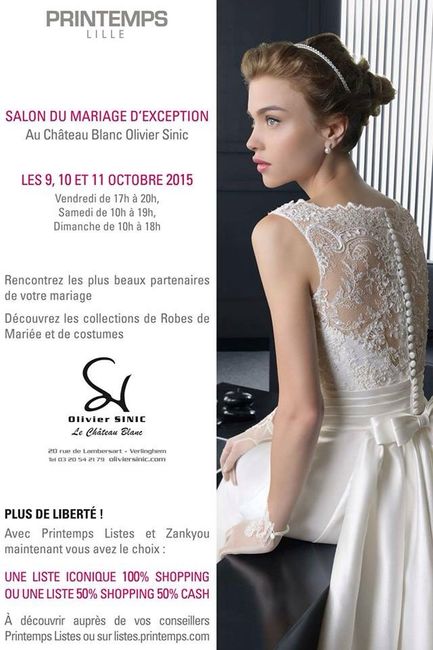 Bonjour à toutes!! Petit infos que je souhaitais vous faire partager! Bon préparatifs Le Salon du Mariage d'Exception se tiendra pour sa 3ième Edition au Château Blanc Olivier Sinic à Verlinghem.Venez découvrir les plus beaux partenaires de votre...
