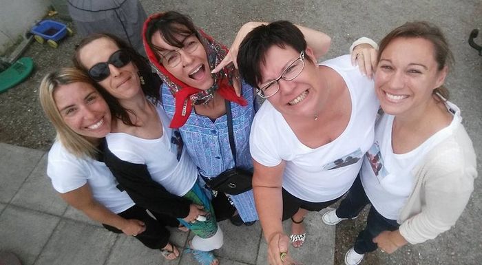 Et voilà nos chers amis sont venus nous réveiller en trombe hier matin à 8h pour nous habiller avant de partir chacun de notre côté pour mieux nous retrouver le soir !;-) super sympa. On a des témoins qui déchirent !