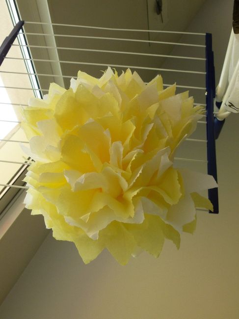 Hello tout le monde Après avoir vu pas mal de pompons réalisés soit en papier crepon soit en papier sur ce site, j' avoue ça m'a donné envie d'essayer... Jusqu'ici je ne savais pas trop quoi mettre dans l'eglise et je me suis dit pourquoi pas des...