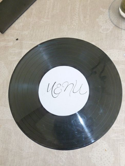 Coucou tout le monde Je suis entrain de réaliser mes menus et j'ai encore besoin de vos avis. je vais écrire mes menus sur des vinyles (merci la brocante du week end ) est ce que je dois ecrire mes menus sur les deux faces ou je fais une face avec...