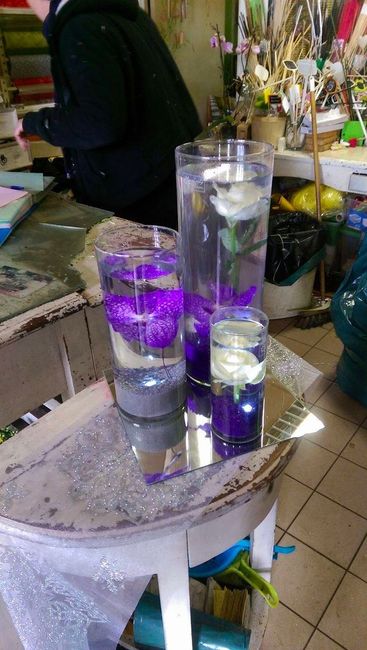 Voilà j'avais créé un sujet il y a quelques temps où je devais choisir mon centre de table. Et bah ça y est j'ai choisi ma fleuriste et avec elle les choix de centre de table. Ce seront trois vases immergés avec une bougie et des leds en violet sauf...