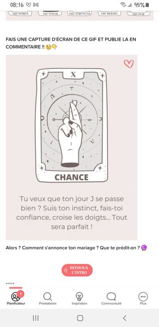 Coucou tout le monde 💜 Merci d'avoir participé jusqu'au bout ! Maintenant qu'on en sait un peu plus sur ton mariage, on va pouvoir tirer les cartes... FAIS UNE CAPTURE D'ÉCRAN DE CE GIF ET PUBLIE LA EN COMMENTAIRE !! 🧐👇 Alors ? Comment s'annonce ton...