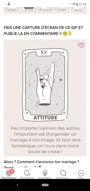 Coucou tout le monde 💜 Merci d'avoir participé jusqu'au bout ! Maintenant qu'on en sait un peu plus sur ton mariage, on va pouvoir tirer les cartes... FAIS UNE CAPTURE D'ÉCRAN DE CE GIF ET PUBLIE LA EN COMMENTAIRE !! 🧐👇 Alors ? Comment s'annonce ton...