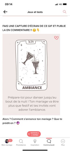 Coucou tout le monde 💜 Merci d'avoir participé jusqu'au bout ! Maintenant qu'on en sait un peu plus sur ton mariage, on va pouvoir tirer les cartes... FAIS UNE CAPTURE D'ÉCRAN DE CE GIF ET PUBLIE LA EN COMMENTAIRE !! 🧐👇 Alors ? Comment s'annonce ton...