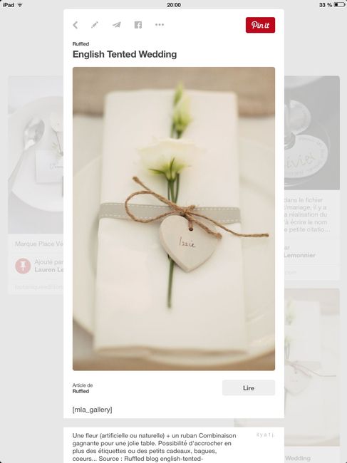 Bonsoir, Je suis désolé si cette discussion a été déjà été ouverte, je n'ai pas trouvé. J'ai trouvé cette photo sur Pinterest et je suis fan ! J'aimerais opter pour ça pour nos marques places, mais pour environ 150 invités, il y a du boulot... Est ce...
