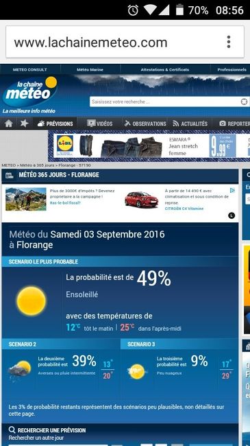 Coucou les filles. J'ai découvert qu'il était possible de consulter les probalitités météorologiques 365 jours à l'avance. http://www.lachainemeteo.com/previsions-meteo-a-365-jours.php On est bien d'accord pour dire qu'il y a 100% de chance...