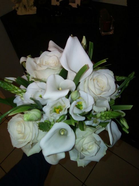 Bonjour les gens !!J'espère que vous allez bien. Moi extrêmement bien : il fait beau, je viens de réserver quelques jours de vacances après le mariage, à 2 semaines du mariage tout est presque bouclé et ce soir.... la fleuriste est passée me déposer...