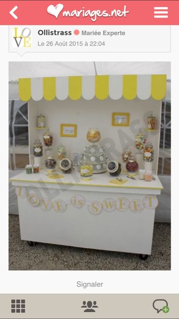 Il manque la partie haute du meuble sur la photo car pas assez de hauteur dans le garage et il me reste une colonne à personnalisée et à peindre mais voici une petite simulation du candy bar . Et vous ou en êtes vous des Preparatifs ???