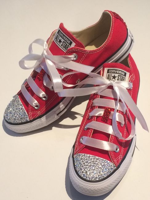 Comme je ne me sens pas de danser avec des talons et qu'au font de moi je suis une ado rebelle a converses j'ai fais un petit customs qui me laissera les petons à l'aise et stylé et un super souvenir après cette journée inoubliable M-4 avant le jour...
