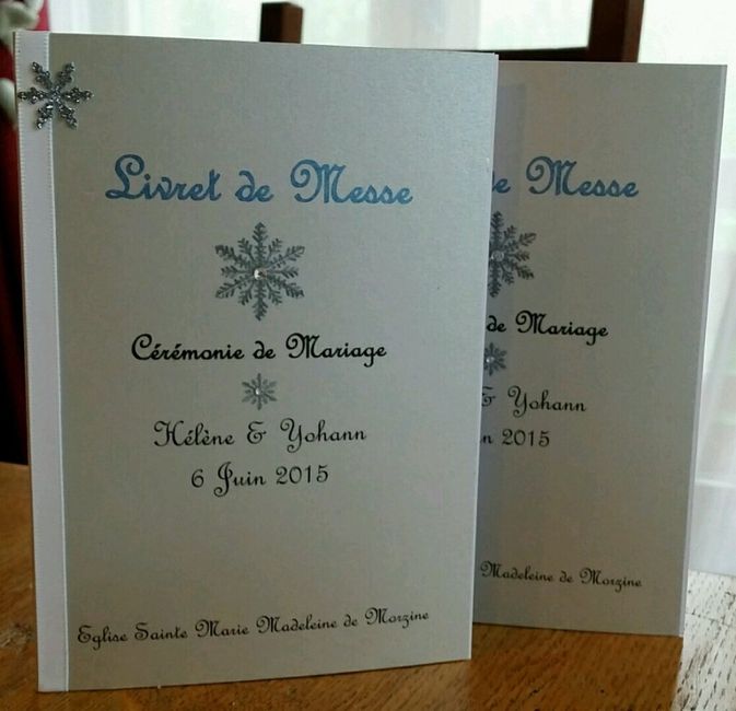 salut les filles on se marie au mois de mai et pour l'instant le prête nous a rien dit au sujet des livrets de ceremonie je le revois pas avant le mois de Février, il faut que je pense a lui demander. Ainsi que le déroulement de la céremonie il est...