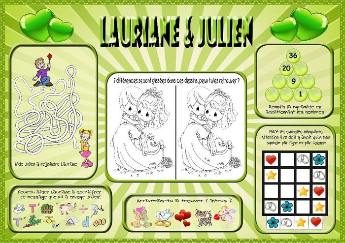 Coucou, Alors voila j'ai une question faites vous la meme déco sur la table des enfants? Personnelement j'ai fait des sets de table pour eux est ce une bonne idée ? Couleur mariage vert.