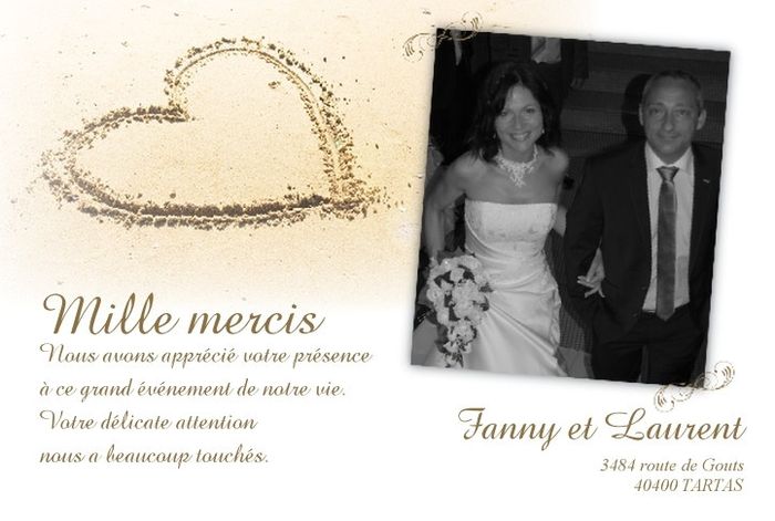ça y'est nous avons reçu nos cartes de remerciements et bien tout comme les faires parts, je suis heureuse d'avoir commandé au même endroit. Petit aperçu Carte remerciement mariage