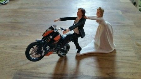 Hello ! Voici notre figurine pour notre weeding cake , petit clin d oeil à mon homme accroché à sa maitressse, sa moto... figurine weeding cake