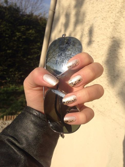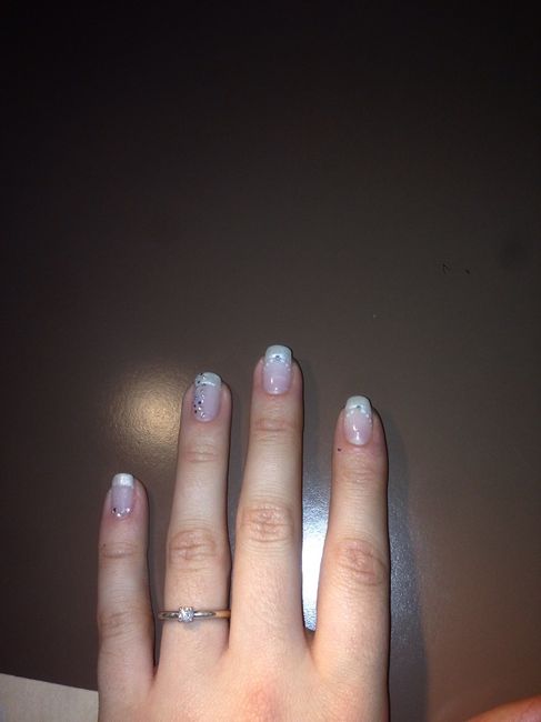 Coucou les filles, J'ai réaliser hier mon premier essai pour le jour j Du coup je ferais tous mes doigts comme les deux premiers et juste l'annulaire avec plus de strass... Mais sûrement juste une ligne bien droite de strass. Et le petit doigt on...