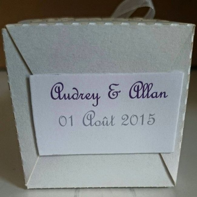 À une semaine du mariage (01.08.2015) j'ai enfin terminé mes dragées et j'en suis plutôt fière ! Dragées Cailloux Galéo Gianduja de couleur grise ; Dragées Liqui'Croc Caramel Beurre Salé de couleur prune et Dragées aux amandes de couleur blanche....