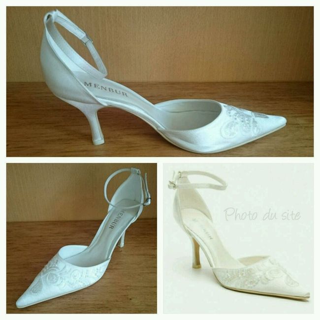 J'ai ENFIN trouvé mes chaussures pour aller avec ma Précieuse ! Je les ai trouvé sur VentePrivée.com, ce sont des Menbur que j'ai eu pour 12 € au lieu de 91 quand-même... J'espère juste que cette fois elles seront bien blanche car ma première paire...