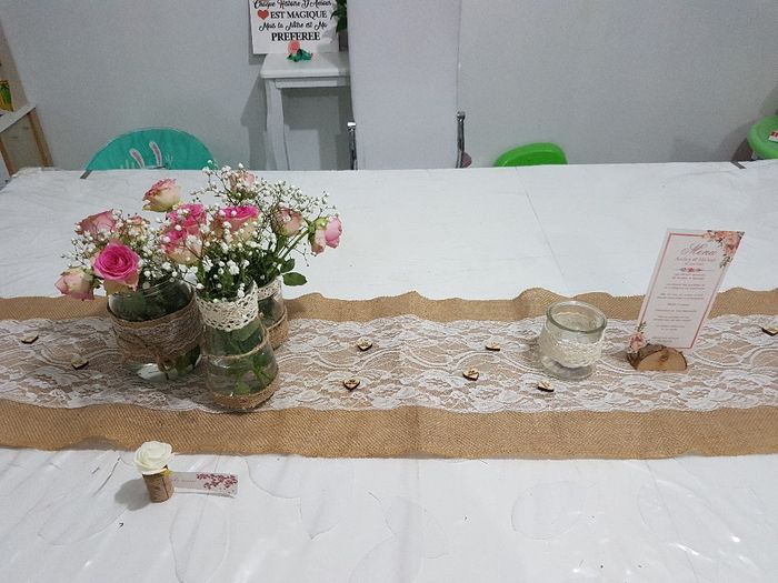 Bonjour les futures mariées, on se marie le 6 juin 2020, je me suis amusée à faire un petit essai pour la déco de table, thème champêtre. Qu'en pensez vous ? D'après vous, est ce qu'il manque quelque chose ? Il y aura du gypsophile avec les roses et...