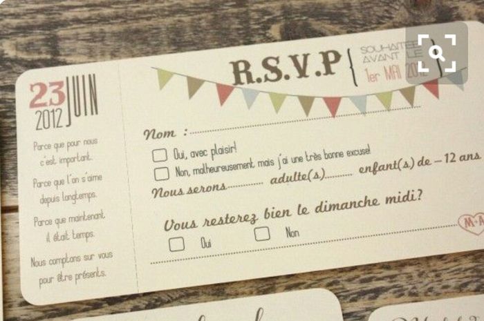 Coucou. Je suis en train de faire des ébauches de faire-part, je vois bien quoi écrire dessus mais je me demande à quoi doit ressembler un coupon réponse, quelles informations? Comment le présenter? Avec des cases à cocher, des lignes à remplir? Je...