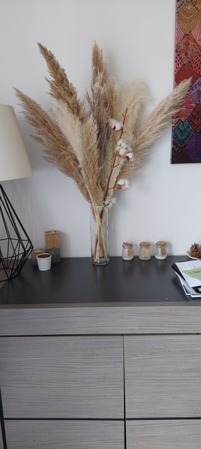 Bonsoir 👋 Avez-vous des idées de comment réutiliser ses pampas de mariage en décoration ? 🥰J'ai déjà décorer dans mon vase à la maison et au bureau 😅. Et mon bouquet à trouver sa place...Je n'ai pas envie de m'en débarrasser et j'en ai encore une...