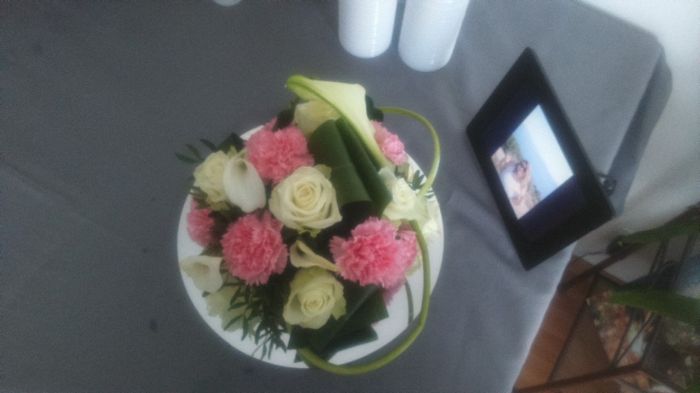 Salut les brides !!!! En ce mercredi soir je suis prise de gros doutes quant au choix de nos fleurs pour les centres de tables. En effet nous avons choisi des roses blanches, des œillets, et des arums. Sauf que l'essai ne me plait pas. (photo...