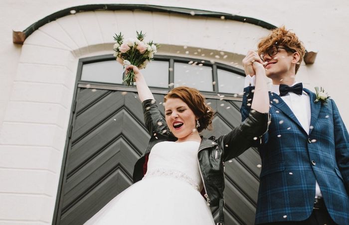 Hello Des photos de mariées en perfecto ?! J'ai bien envie de m'en acheter un (qui me resservira forcément) pour le soir. Ma robe est écru, bohème, avec beaucoup de dentelle de Calais et fluide, j'adore le style que donne la veste en cuir à une...