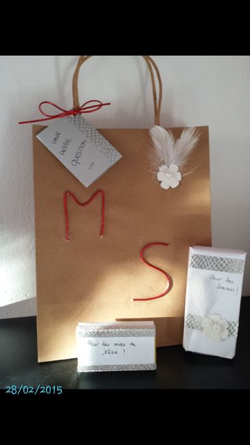 Je voulais faire une demande originale à mes témoins en leur offrant un kit. j'ai commencé à préparer ces kits pour mes témoins dans lequel ils trouveront des accessoires essentiels pour le Jour J, un guide du témoin et un petit cadeau (encore en...
