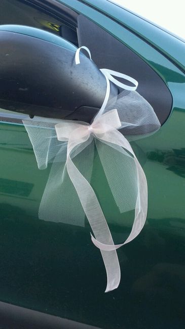 Voici un de mes noeuds de voiture. L'autre couleur est violet mais je n'ai pas de photo. Qu'en pensez vous ? Mon chéri aimerait une couleur foncée. Je pensais changer et avoir plusieurs couleurs aussi. Est ce que ça ne fera pas trop arc en ciel ? ...