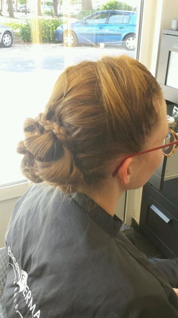 J'ai demandé un chignon plutôt décontract, lâche. Je suis satisfaite et déçue en même temps... même si je sais que ce n'est qu'un essai et qu'au lieu d'1h la coiffure sera faite en 1h30 2h !